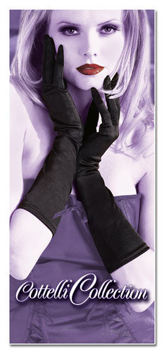 Made of black stretch satin - completes every seductive outfit! Medium length, up to shortly under the elbow. 90% polyamide, 10% elastane.