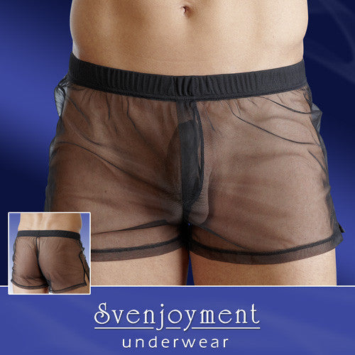 Slightly wider fit. Small slits up the sides and discreet opening at the front. Transparent black. 100% polyamide.
