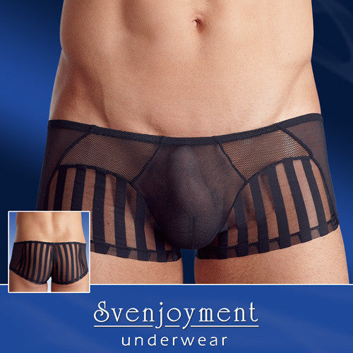Tight fitting pants made of two different net fabrics with trendy stripes-design. Reinforced slim hem line. Black. 90% polyamide, 10% elastane.