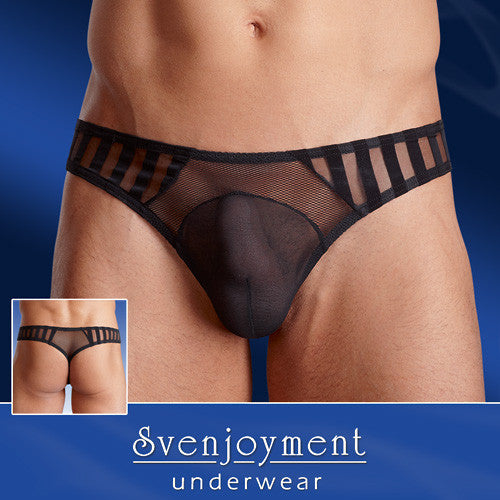 Men´s String, made of two different net structures in trendy stripes-design. Black. 90% polyamide, 10% elastane.