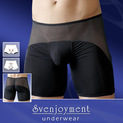 Elastic pants made of sheer powernet fabric. With special seams to lift up the front and contour the buttocks. Black. 85% polyamide, 15% elastane.