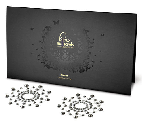 Silver-coloured self-adhesive nipple stickers with rhinestones. Silver-coloured. Approx. 6.5 cm, 1 pair. Material: ABS with adhesive surface made of silicone.