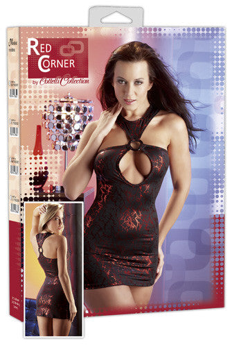 Elastic mini dress with a sexy cleavage and an ingenious back sight. Black/red. 92% polyester, 8% elastane.