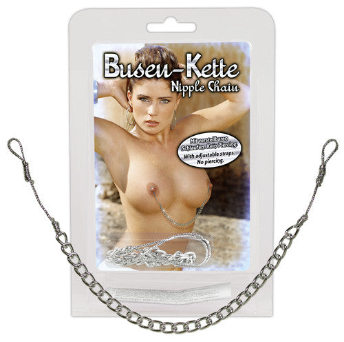 17 cm feather light chain on pullstraps. Simply place around staff nipples and pull tight. Colour: silver. Total length: 25 cm.
