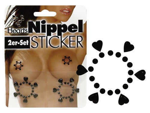 2 nipple stickers made of heart shaped black rhinestones. Ø approx. 1.7cm.