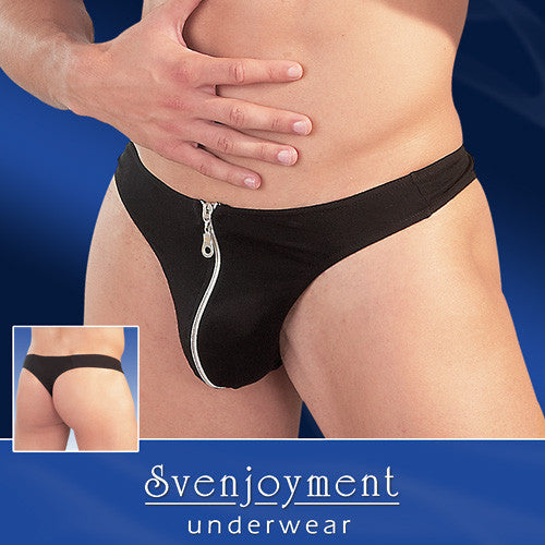 String in deep black with a silver-coloured zip at the front. 90% viscose, 10% elastane.