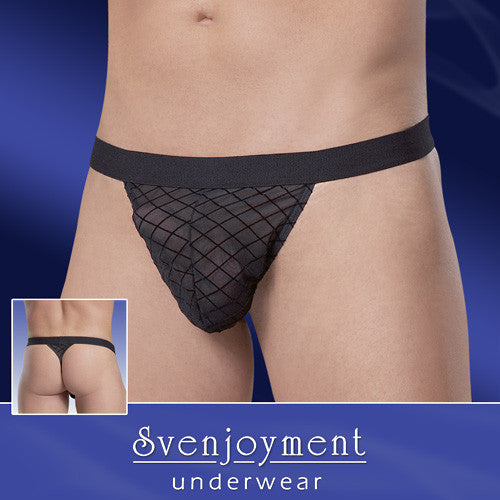 String made of elastic, transparent power net fabric, with latice flocking. Black. 90% polyamide, 10% elastane.