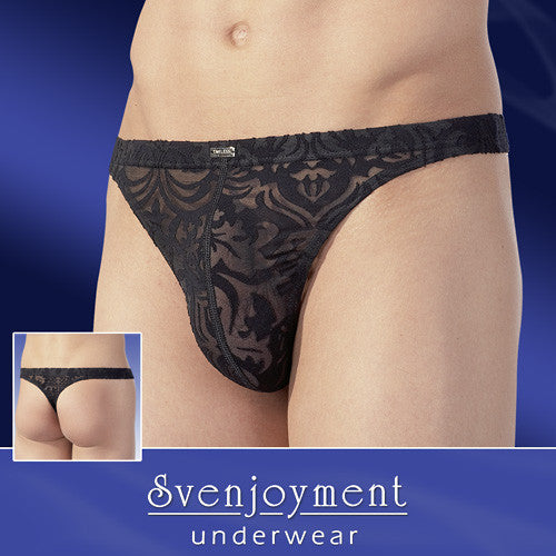 Black, transparent devoré look. Soft and elastic material. 50% polyamide, 42% modal, 8% elastane (Lycra®).