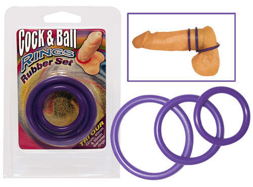 Three smooth special rubber rings with Ø between 3.2 and 5 cm. Can be used separately or together. Colour: purple.