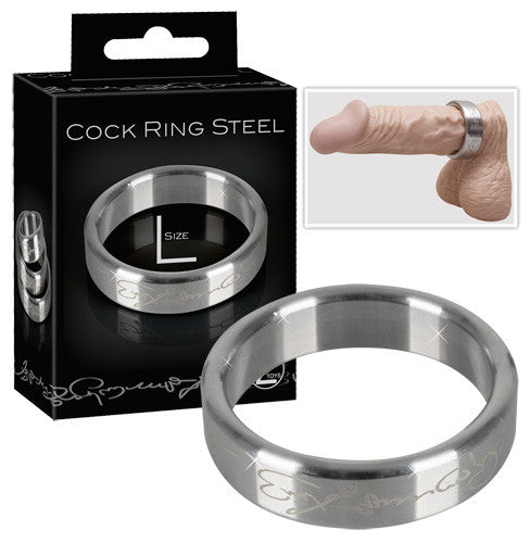 Cock ring with a fantasy engraving. Matte silver-coloured. Inner Ø 3.5 cm. Weight: 71 g. Material: stainless steel.