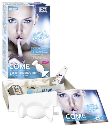 It's called COME and is placed as easy as a tampon. The flexible form, the anatomical curving and the high comfort can make you ready for super orgasms. The perfect training against incontinence or after giving birth. Length approx. 8 cm, Ø 4,4 cm. Material: TPE. 100 ml lubricant "Hot Glide", 50 ml cleanser "Hot Cleaner", booklet, traveller bag and lubricant sachet (2 x 3 ml) included.