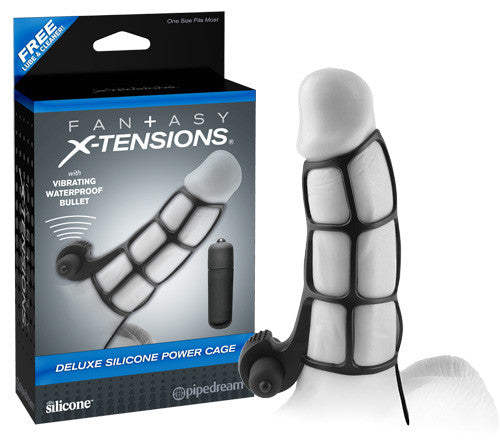 Black silicone erection sleeve with testicle strap and Vibro-clitoris stimulator. It can extend erections. Approx. 12 cm long, inner-Ø 3.8 cm. Material: silicone, ABS, phthalate-free according to EU Regulation REACH. Includes batteries, lubricant and cleaner.