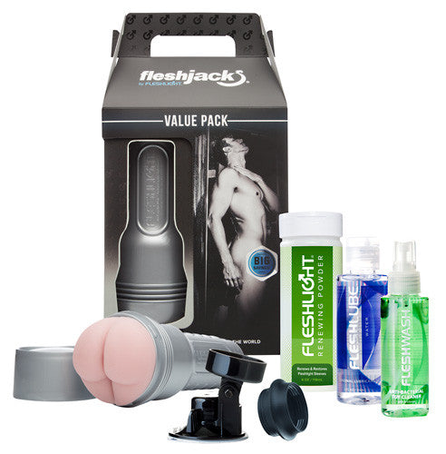 Masturbator Set: silver coloured case with a pink coloured lust tunnel that has a buttock shaped opening (Ø flexible) and dots. Complete length approx. 25 cm. Material: TPR, TPE, phthalate-free according to EU Regulation REACH. Plus 100 ml Fleshlight talcum powder, 100 ml Fleshlight toy cleaner, 100 ml Fleshlight water lubricant, shower mount for smooth surfaces and a flight adapter for the mounting piece. Everything comes in promotional packaging.
