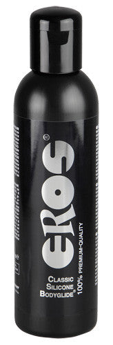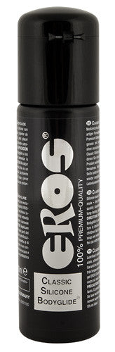 Silicone-based medical lubricant. Dermatologically tested for skin and mucous membrane compatibility. No preservatives. Condom-friendly. 100 ml bottle.