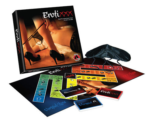 Board game for couples! Content: game board, 3 packs of cards, 2 playing pieces, dice, eye mask. For 2 players.