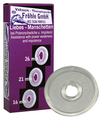 After the "training" with a erection pump from Fröhle when blood was transported in the erection tissue by vacuum, pull the sleeve over the penis. So the erection maintains visibly. The blood reflux happens very slowly. Inner-Ø 16 mm. Material: TPE. Medico-technical examined and protected by the patent office.
