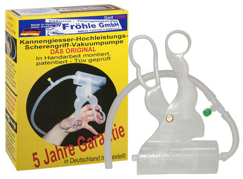 High-performance scissors-grip vacuum pump - the original for the successful application of vacuum therapy. It provides ca. 800 Mbar vacuum - even in the shower. Medico-technical examined and protected by the patent office. TÜV-tested. Material: ABS.