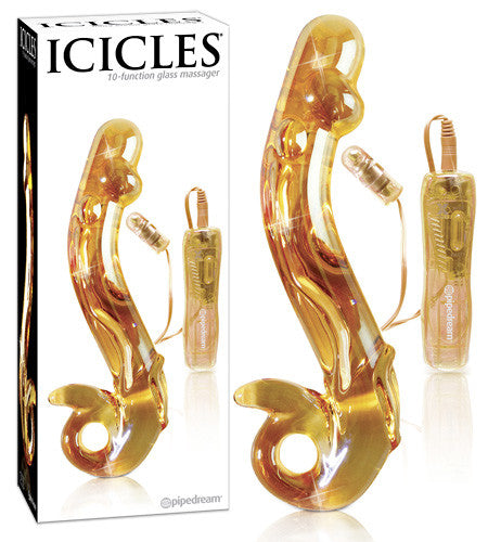 Orange-coloured glass-dildo with vibro-bullet (with 10 vibration levels). Total length approx. 18 cm, penetration depth approx. 12 cm. ø 2.8 - 3.1 cm. Material: Handmade quality-glass.