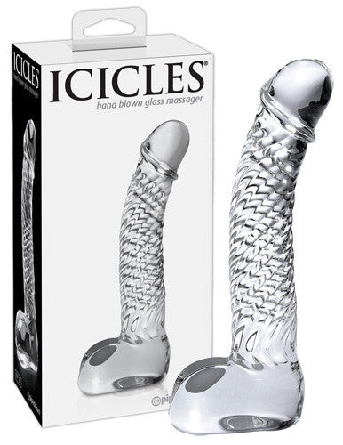 Transparent, bent dildo made of mouth-blown quality glass with grooved shaft and testicles. Length 16.5 cm, penetration depth 13.3 cm. ø 2.8 cm. Tip: warmed up in water or cooled down in the refrigerator, it can enhance the passion feeling even more. Odourless, anti-allergenic and very hygienic, because it's easy to clean, even in the dishwasher.