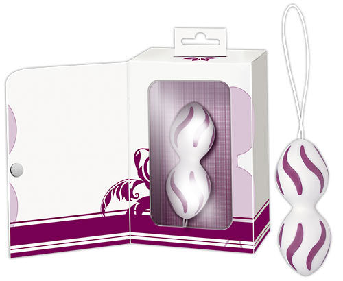 Loveballs with a stimulation structure. White/purple. Ø 1.5-3.5 cm. Material: TPR/ABS.