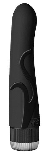 Black vibrator with stimulating scroll structure at the shaft. Strong silent vibration continuously adjustable. Total length approx. 14 cm, penetration depth 11.8 cm. Ø 2.5-3.2 cm. Material: silicone. (Please order batteries separately: 2x Micro/AAA)