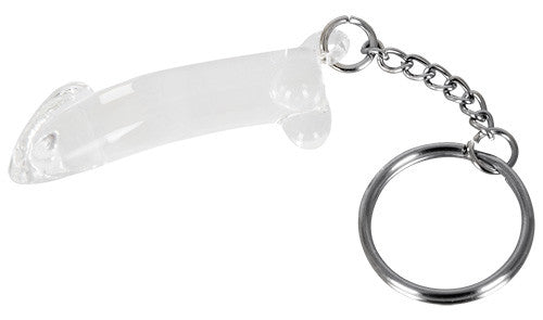 Key ring with a crystal penis pendant. Pendant size: 6.5 cm. Held together with a hoop.