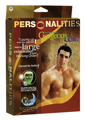 Lifesized inflatable male doll with a 17.8 cm long, inflatable penis and a tight anus. Face and chest glowing the dark.