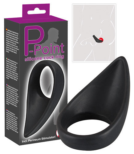 Penis and testicles are pulled through the ring so that the perineum is stimulated by the pointy shaft. Black. Ring- Ø 5 cm, slightly flexible. Complete length 12.5 cm. Material: silicone, phthalate-free according to EU Regulation REACH.