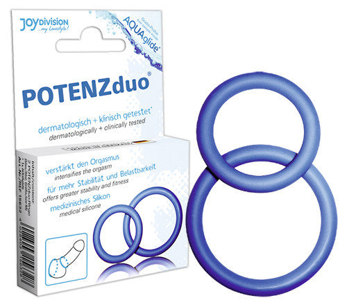 Penis and testicle ring for a bigger, stronger and longer erection. Ø penis ring 3.5 cm. Ø testicle ring 4.5 cm (both are flexible). Blue. Material: silicone.