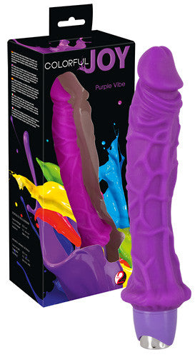 Purple-coloured vibrator with pronounced glans and veining. Strength of vibration adjustable by rotary button. Length approx. 26 cm, Ø 3.5-4.6 cm. Material: silicone, ABS, phthalate-free according to EU Regulation REACH. (Please order batteries separately: 2 x Mignon/AA)