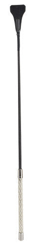 65 cm long crop with rhinestones at the handle and woven wand. With strap. Black. Material: ABS, leather, rhinestones.