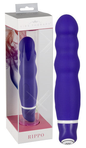 Vibrator with wavy shaft. Silent vibration in 7 different rhythms at the push of a button. Purple. Length approx. 15 cm, Ø 2.4-3 cm. Material: silicone, ABS, phthalate-free according to EU Regulation REACH.