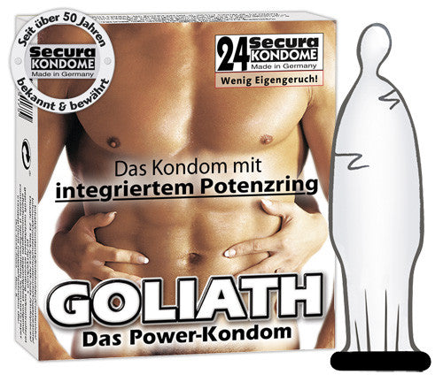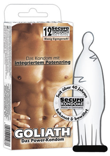 Condoms with an integrated potency-ring. Each condom fits skin-tight to the penis, no slipping. Blood circulation will be supported and the penis keeps firm for a long time. With lubrication and reservoir tip. Brand new: with little characteristic (latex/