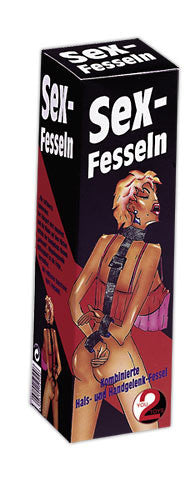 Combined neck and hand cuffs set. Softly padded and individually adjustable thanks to Velro fasteners. Made of tearproof synthetic fibre